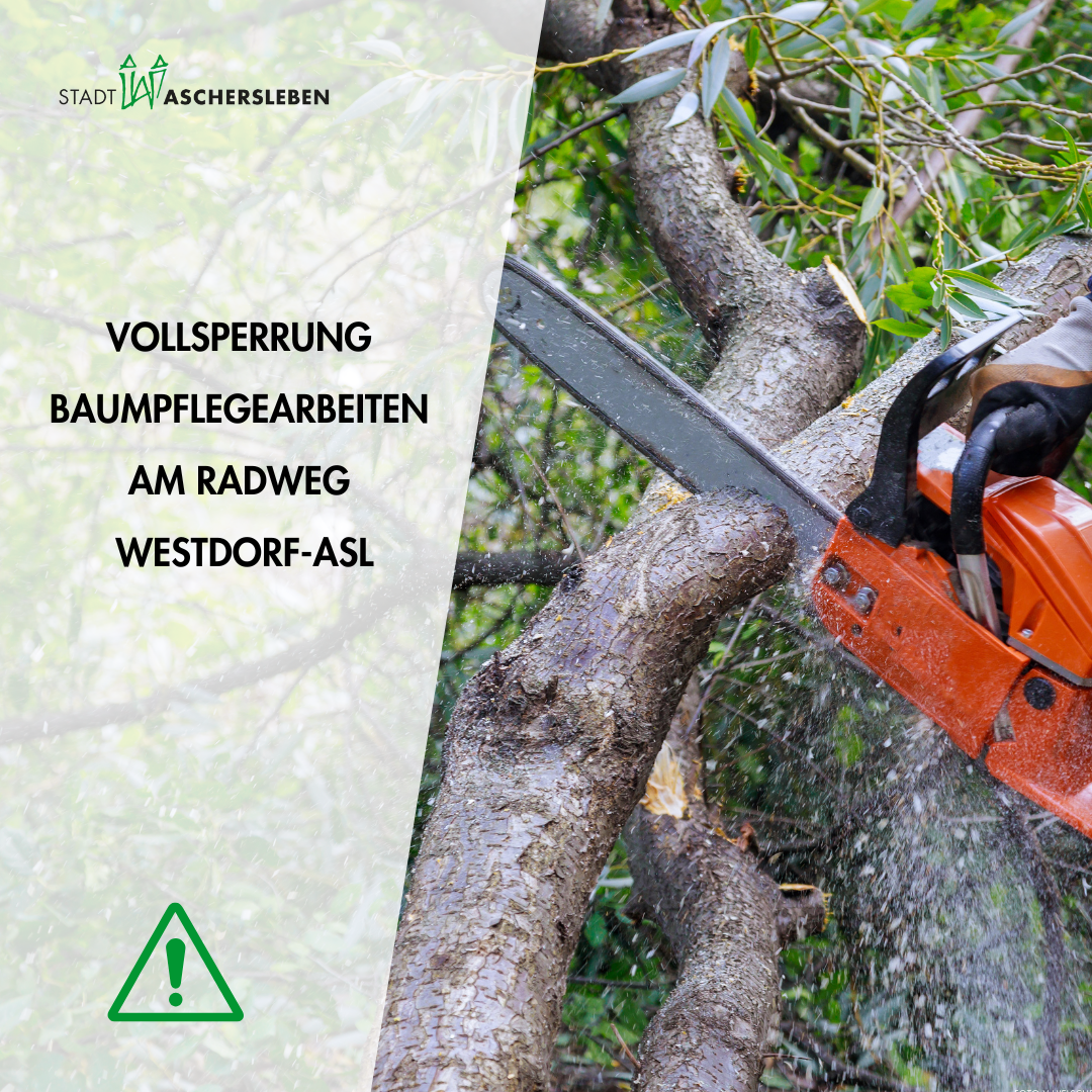 Im Bereich des Radweges zwischen Aschersleben und Westdorf werden ab kommender Woche umfangreiche Grünpflegearbeiten vorgenommen. Da der Bereich für die notwendige Technik teils schwer zu erreichen ist, erfolgen die Grünschnittarbeiten unter Vollsperrung des Weges im Bereich Tennisplatz bis Westdorf, Höhe der Kleingartensparte.