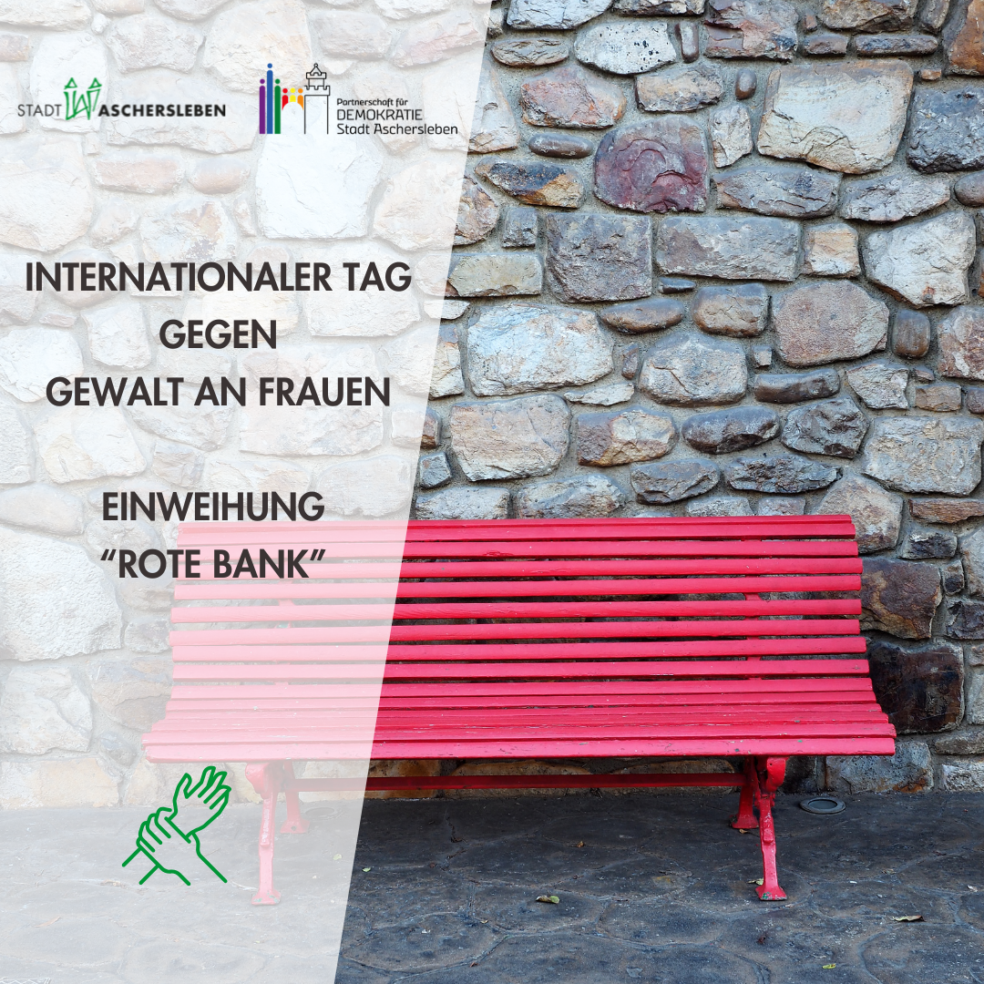 Im Rahmen dieses Gedenk- und Aktionstages möchte die Stadt Aschersleben eine Rote Bank vor dem Museum aufstellen und auf das Thema Gewalt gegen Frauen öffentlich aufmerksam machen. Die Idee der Roten Bank geht zurück auf die Aktion „La Panchina Rossa” aus Italien. Dort steht die Rote Bank seit 2016 im öffentlichen Raum als Symbol gegen häusliche Gewalt. Zwischenzeitlich sind viele Städte, auch in Deutschland, diesem Beispiel gefolgt.