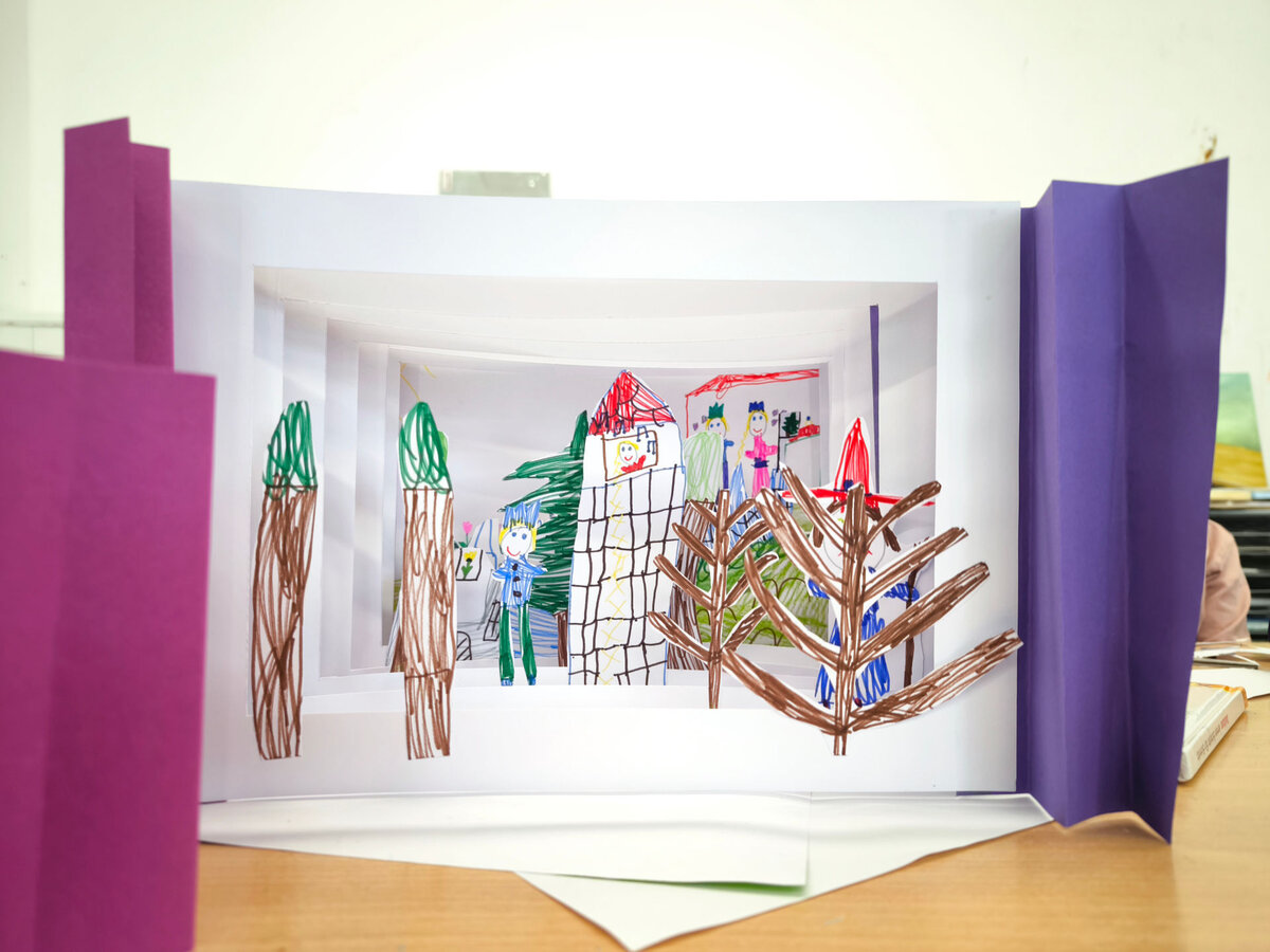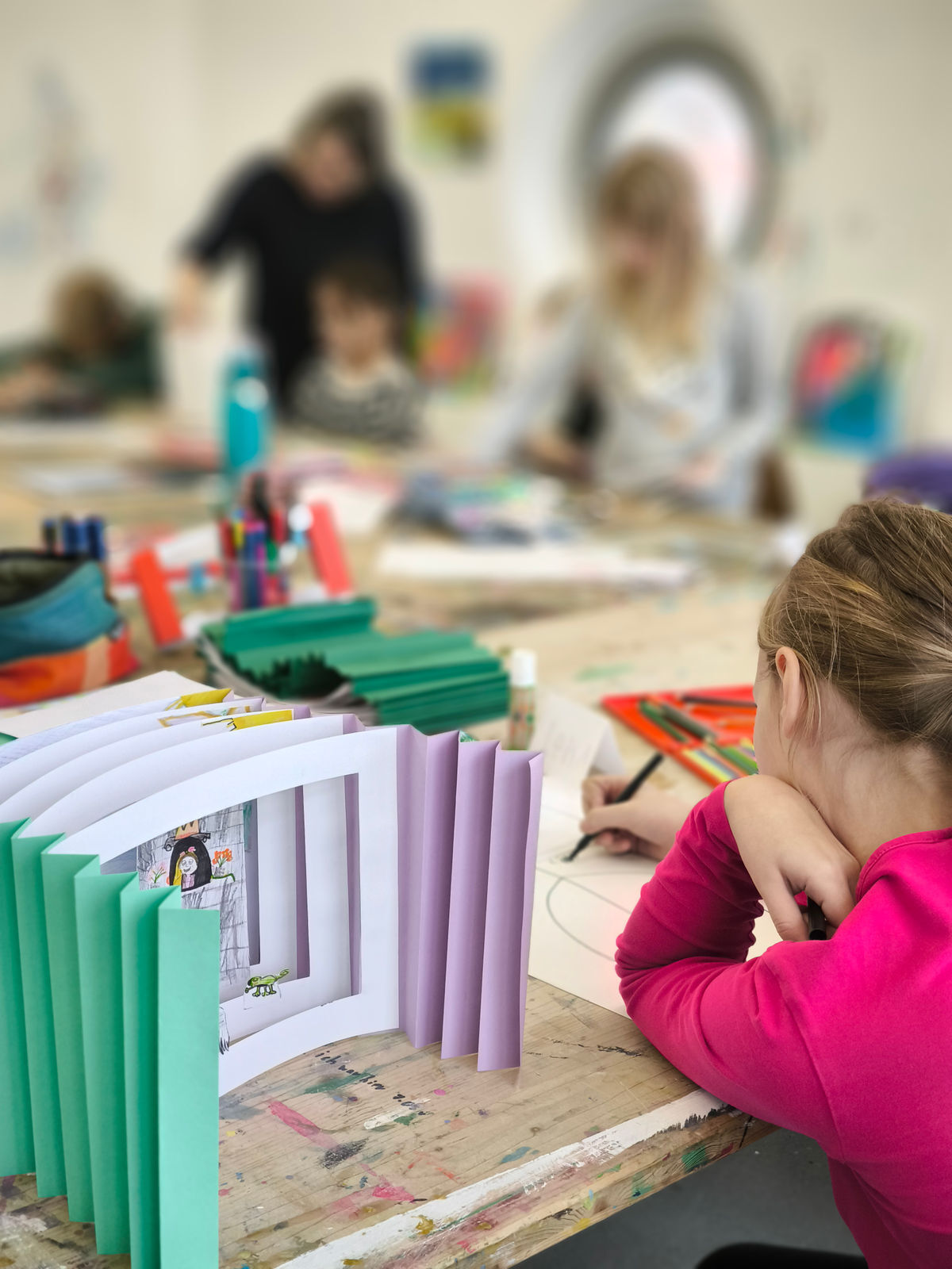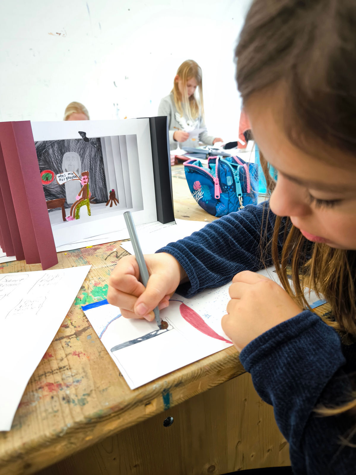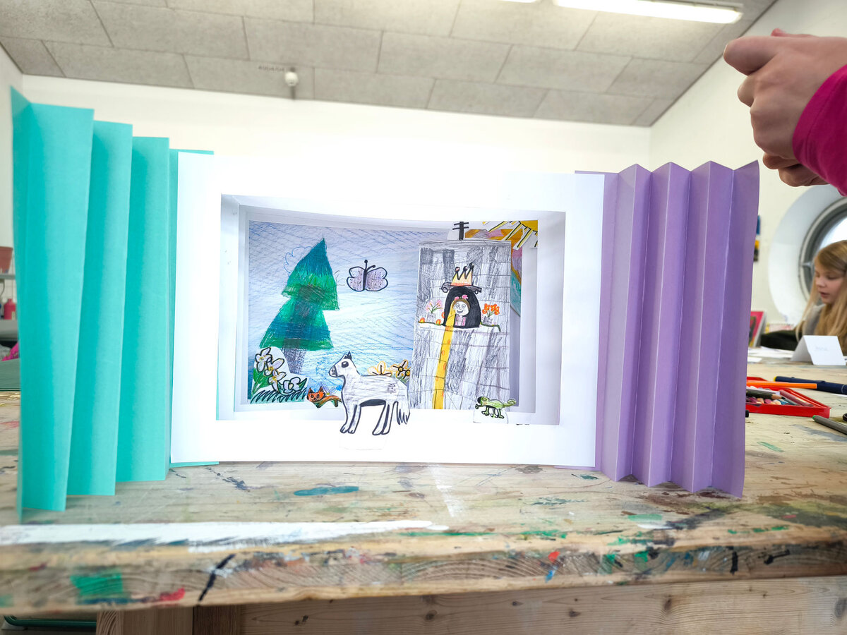 Die Ergebnisse aus der Werkstatt Buchkunst wurden von den Kindern in einer Ausstellung vorgestellt: