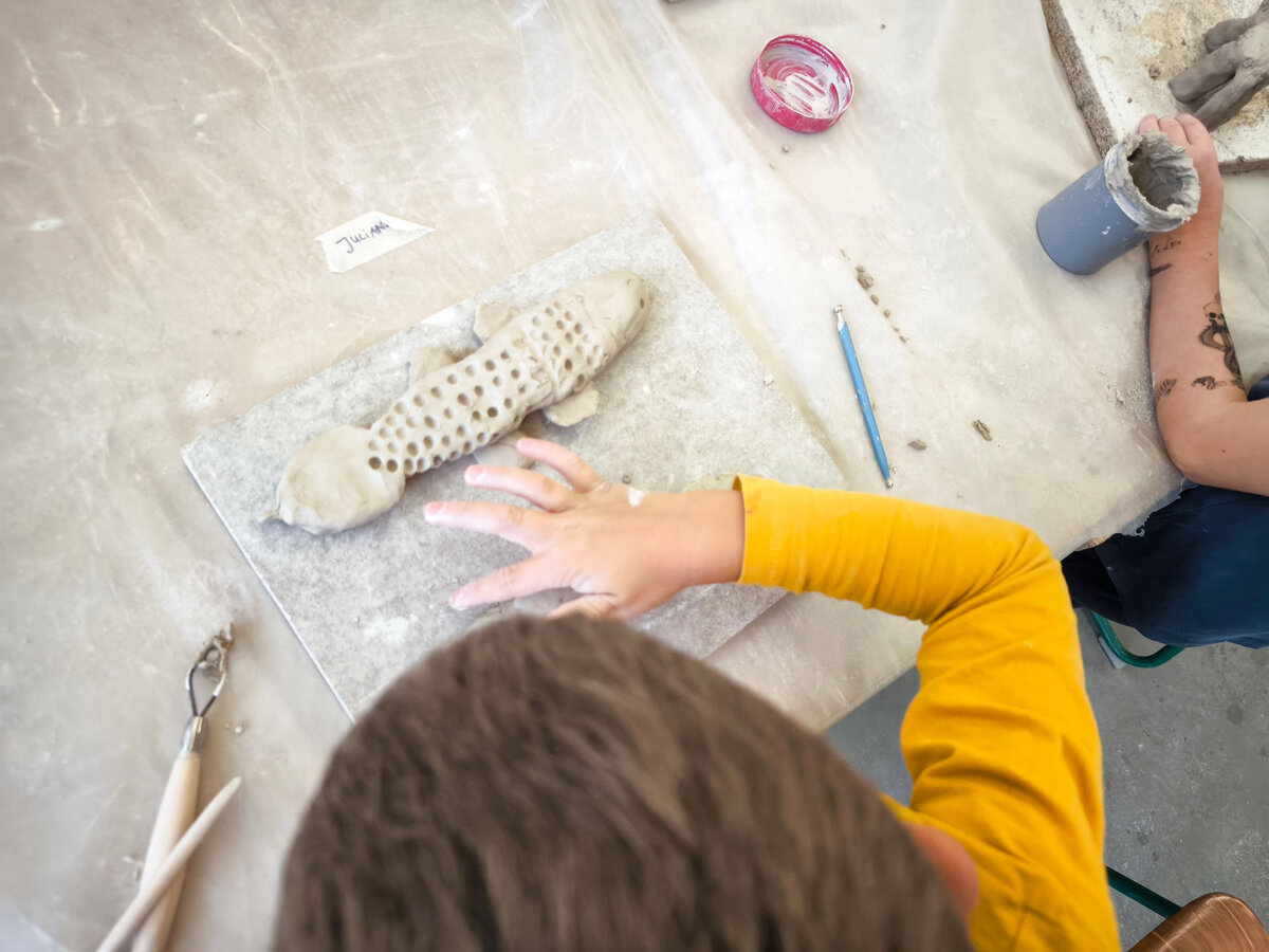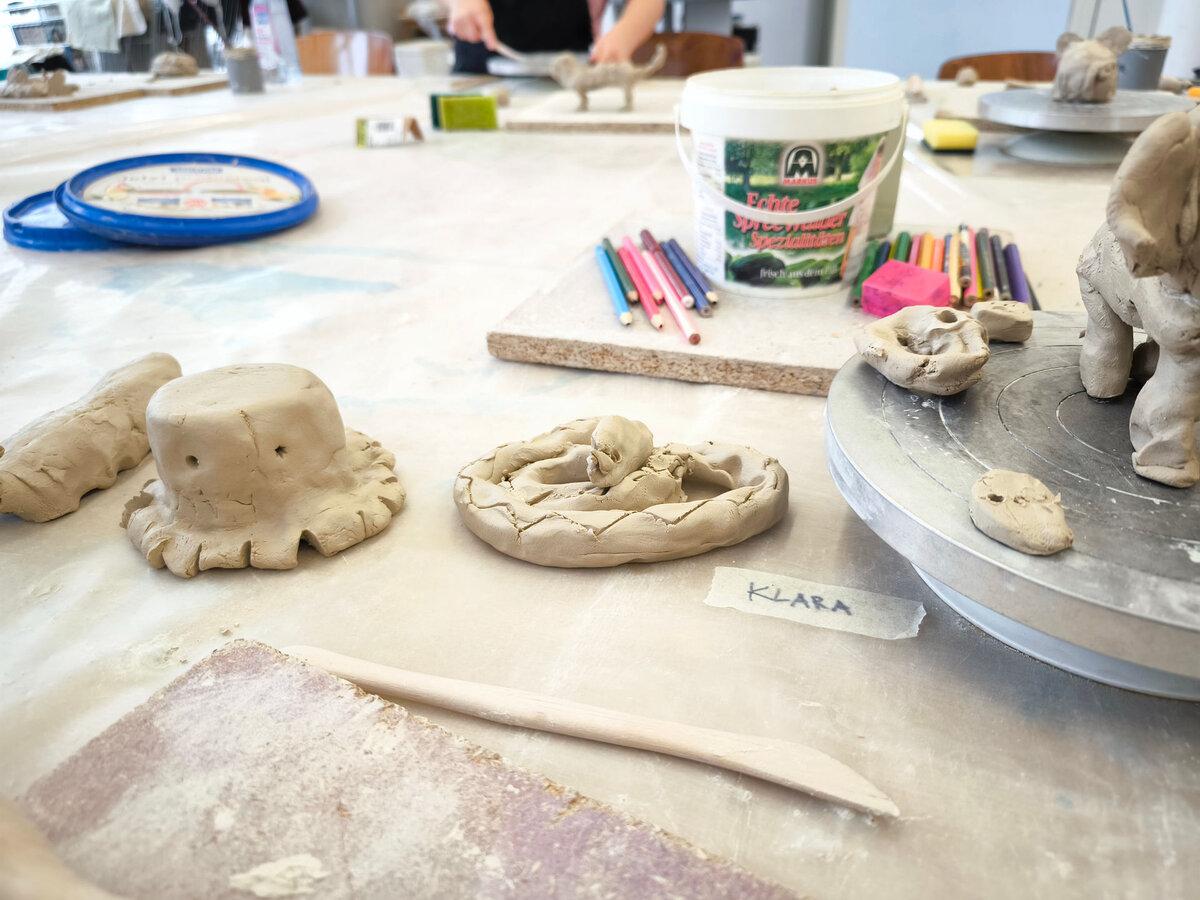 Aus der Projektbeschreibung: ICH.DU. ER. SIE.ES. In der Werkstatt für Plastisches Gestalten / Objekt arbeiten wir vorrangig mit dem Material Gips. Aber auch Fundstücke (Naturmaterialien, Plastikmüll, Gesammeltes) werden bei den entstehenden Plastiken, Skulpturen oder Reliefs zum Einsatz kommen. Thematisch dreht sich alles um Menschen und Tiere. Gutes Beobachten ist beim Naturstudium genauso gefragt wie der Mut und die Phantasie beim Verfremden und Experimentieren. BITTE EIN ALTES SHIRT /SCHÜRZE ZUM SCHUTZ DER KLEIDUNG MITBRINGEN!!!