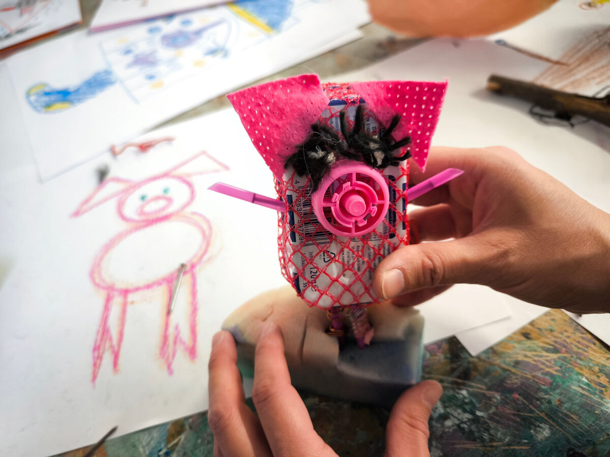 Aus der Projektbeschreibung: Müll- bzw. Schrottprojekt Schreib- und Skulpturenwerkstatt, Soundexperimente und Musiktheater Habt ihr Lust, spannende Geschichten über kleine Müllmonster zu erfinden? In unserem Wochenprojekt bauen wir die Monster aus buntem Material und schauen uns genau an, wie ihre Oberflächen sich anfühlen, welche Töne und Geräusche sie machen. Dann verwandeln wir diese Geräusche in tolle musikalische Kompositionen! Lasst uns gemeinsam kreativ sein, Geschichten erzählen und Musik machen. Wir freuen uns auf euch!