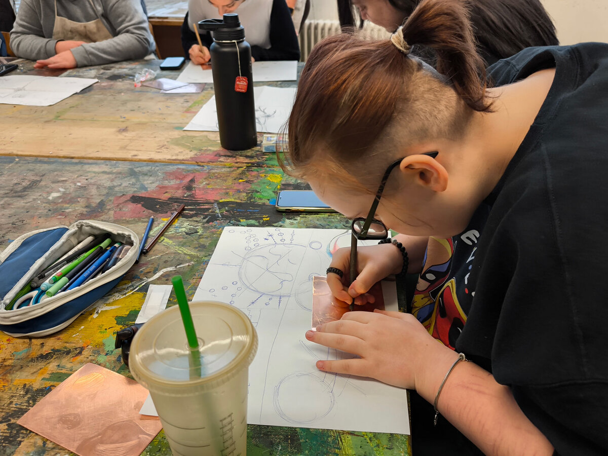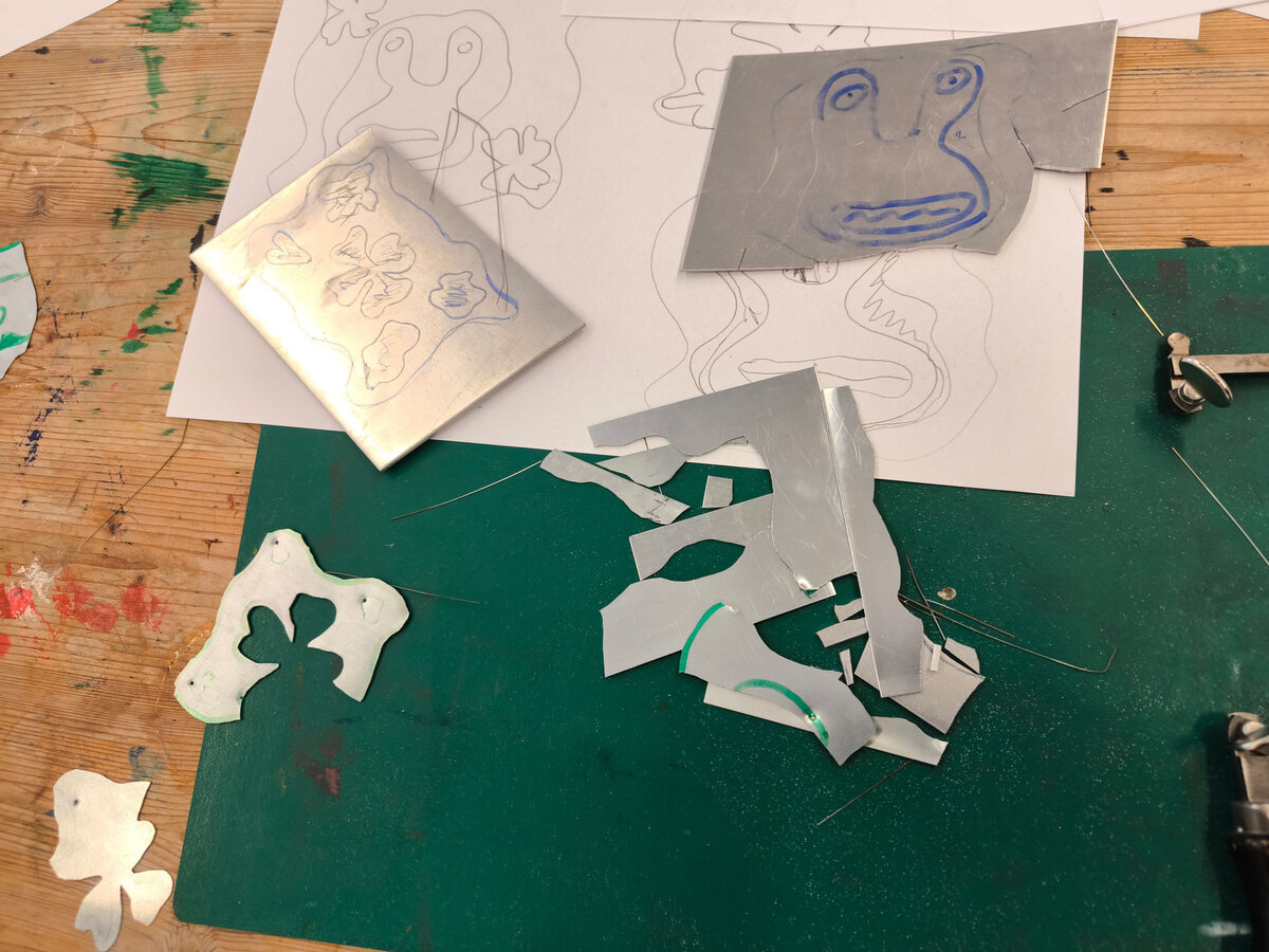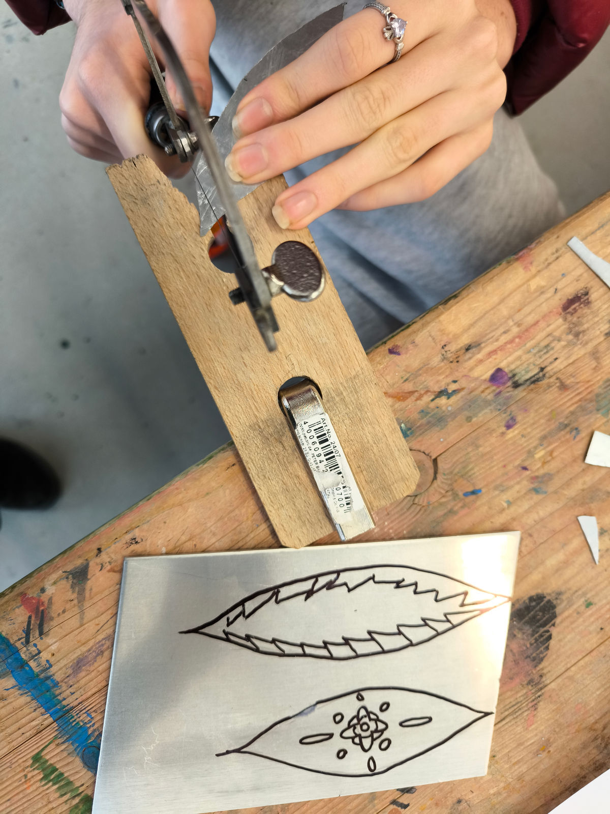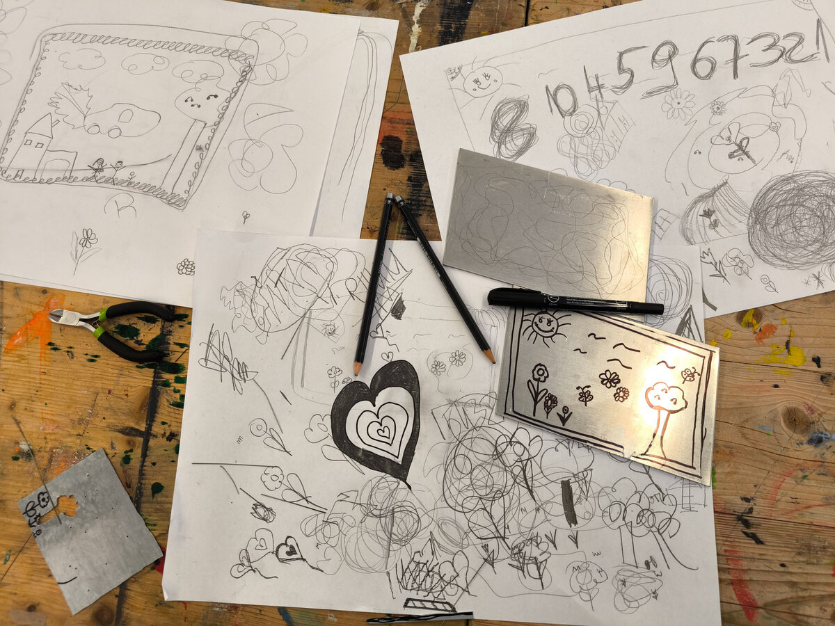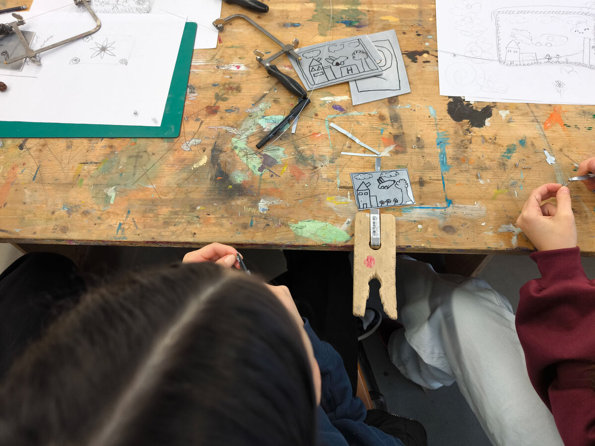 Projektbeschreibung: „Lächel mal wieder!“ In dieser Woche beschäftigen wir uns mit dem Lächeln und dem Lachen. Es gibt so viele ernste Themen um uns herum, so, dass wir versuchen wollen, etwas mehr Lachen in die Welt zu bringen. Was bringt dich zum Lachen? Welche Erinnerung zaubert dir ein Lächeln ins Gesicht? Zu diesem Thema werden zunächst Skizzen gezeichnet und Modelle aus Papier angefertigt. Die Schmuckstücke selber werden aus Aluminiumblech und Draht mit goldschmiedischen Grundtechniken, wie Sägen, Feilen und Biegen, hergestellt. Die Schülerinnen und Schüler erlernen diese Techniken anhand einfacher Übungen, damit sie dann die eigenen Entwürfe umsetzen können. In der Schmuckwerkstatt sind handwerkliches Geschick, Geduld und Ideenreichtum gefragt. Unsere Materialien und Werkzeuge werden im Wesentlichen sein: Metallblech und -draht, Papier, Dekomaterialien wie z.B. Perlen, Schnur, Säge, Zangen, Feilen, Bohrmaschine und vieles mehr…