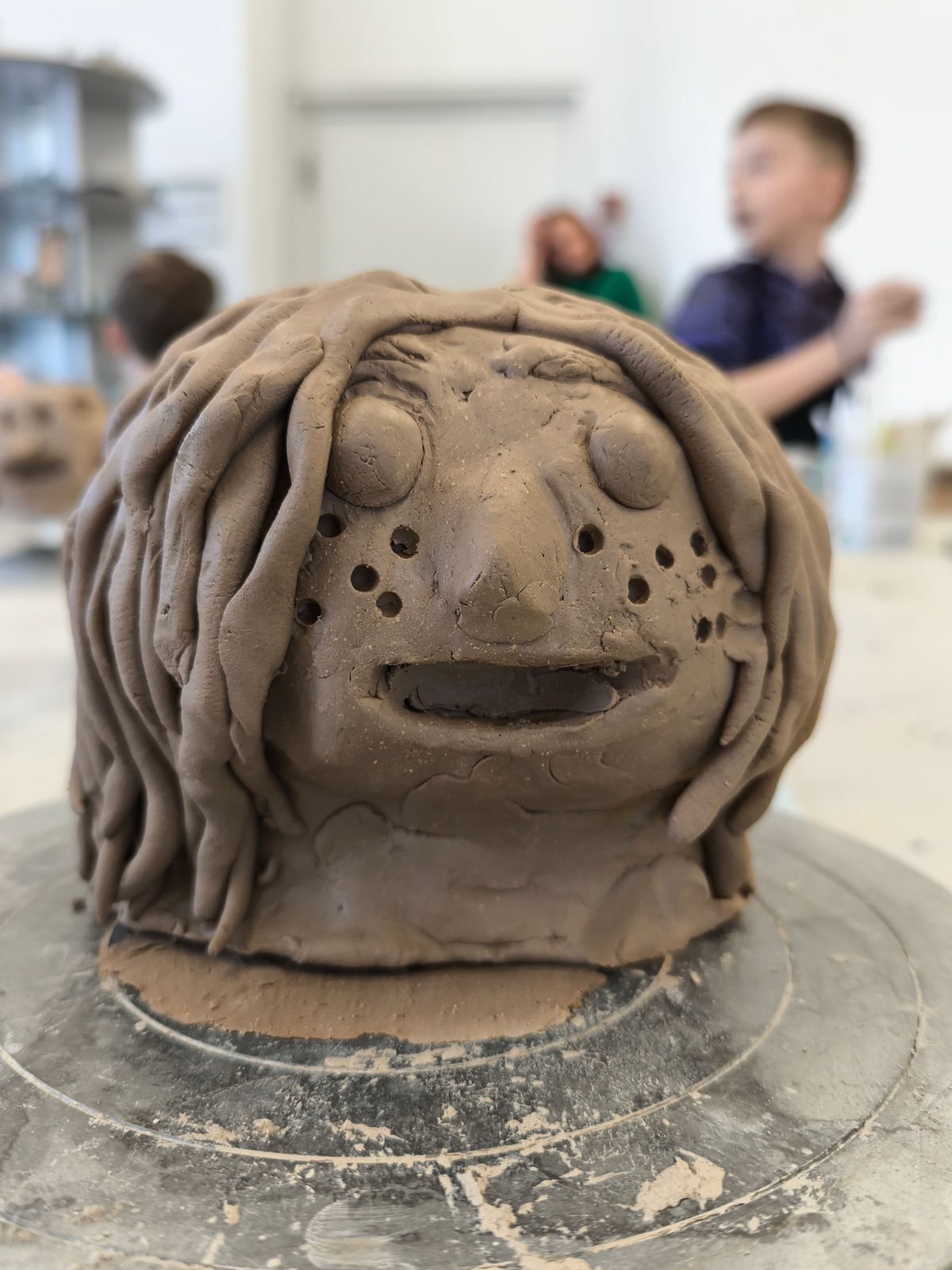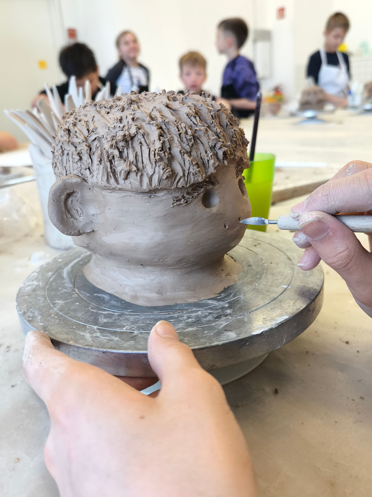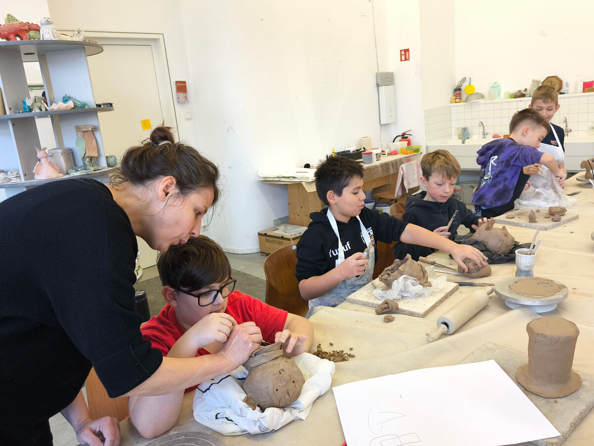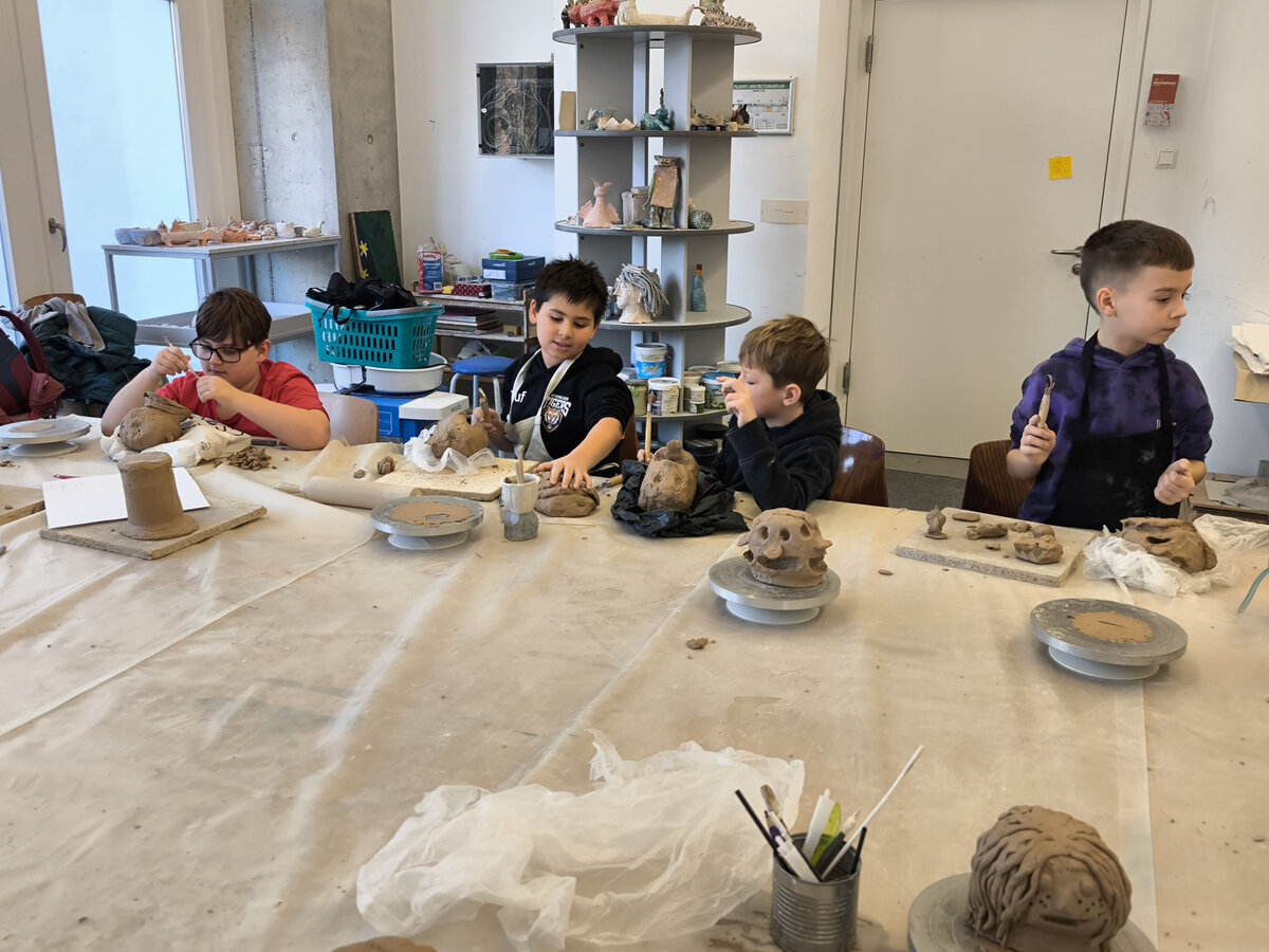 Projektbeschreibung: In dieser Projektwoche modellieren wir Köpfe aus Ton und erfinden neue Persönlichkeiten. Dabei spielt das spielerische Ausprobieren mit dem Material Ton im Mittelpunkt. Wir erkunden wie man den Ton zu einem Kopf formt und wie durch das Auftragen und Abtragen von Ton lustige, gruselige und so unterschiedliche Charaktere entstehen. Wir modellieren Falten, Augen und Haare und schließlich werden die Porträts, mit Farbe bemalt, lebendig. Was verraten uns einzelne Details wie Schmuck, Frisur oder der Gesichtsausdruck über die Person? BITTE DENKT DARAN KLEIDUNG ANZUZIEHEN, DIE AUCH SCHMUTZIG WERDEN KANN!