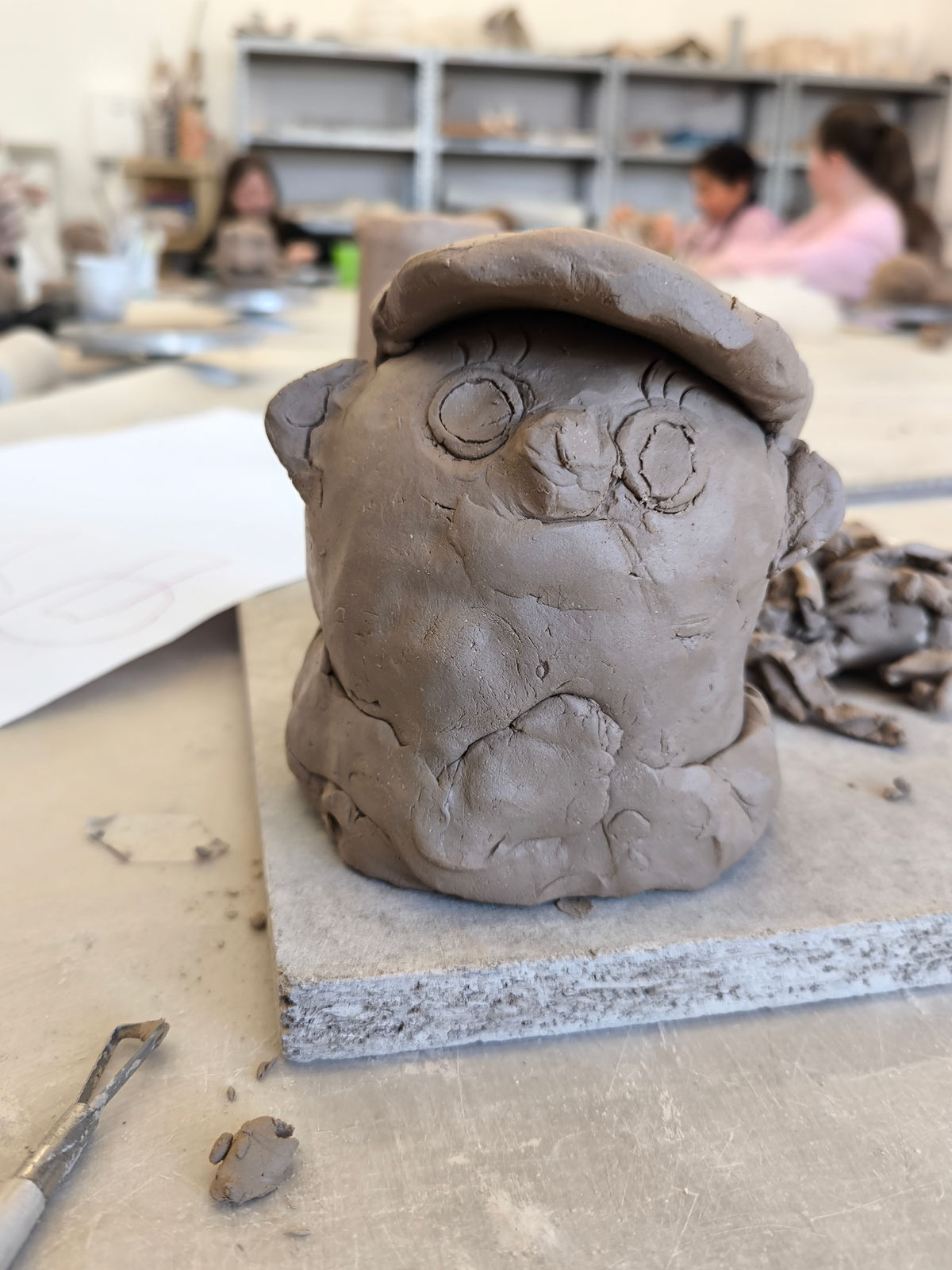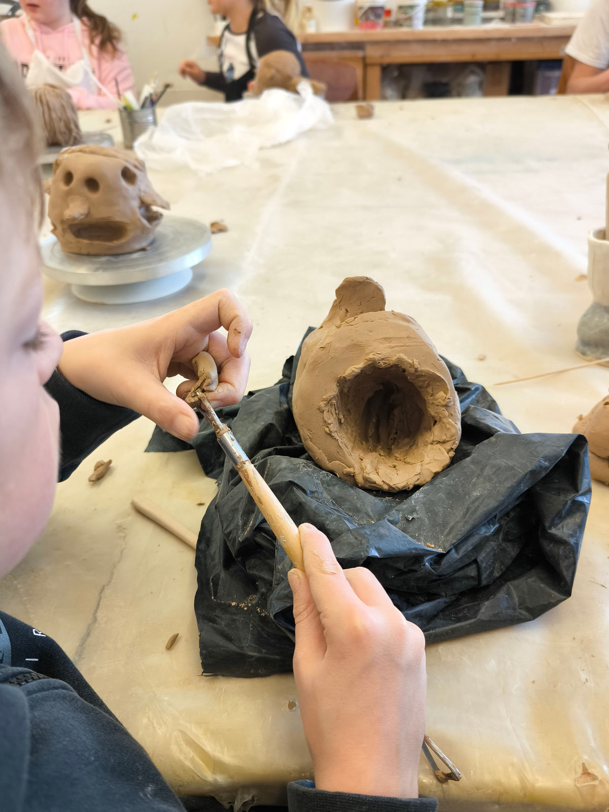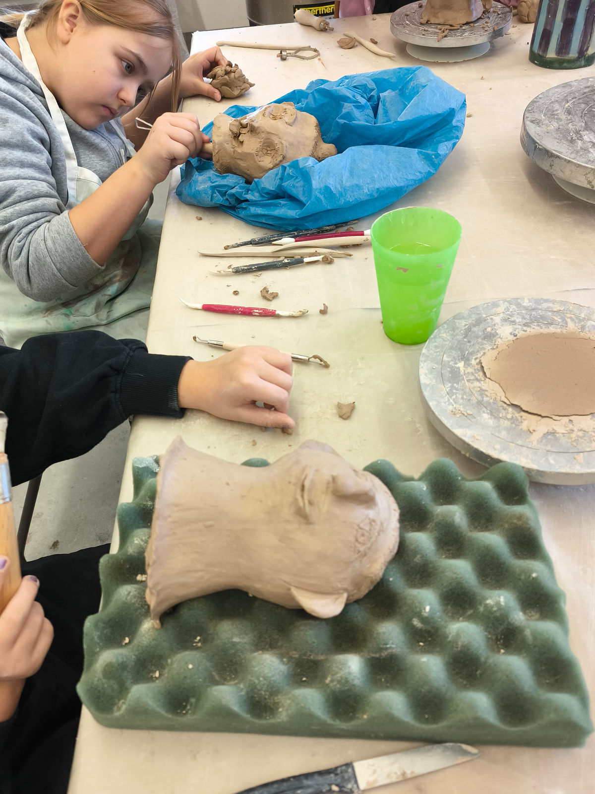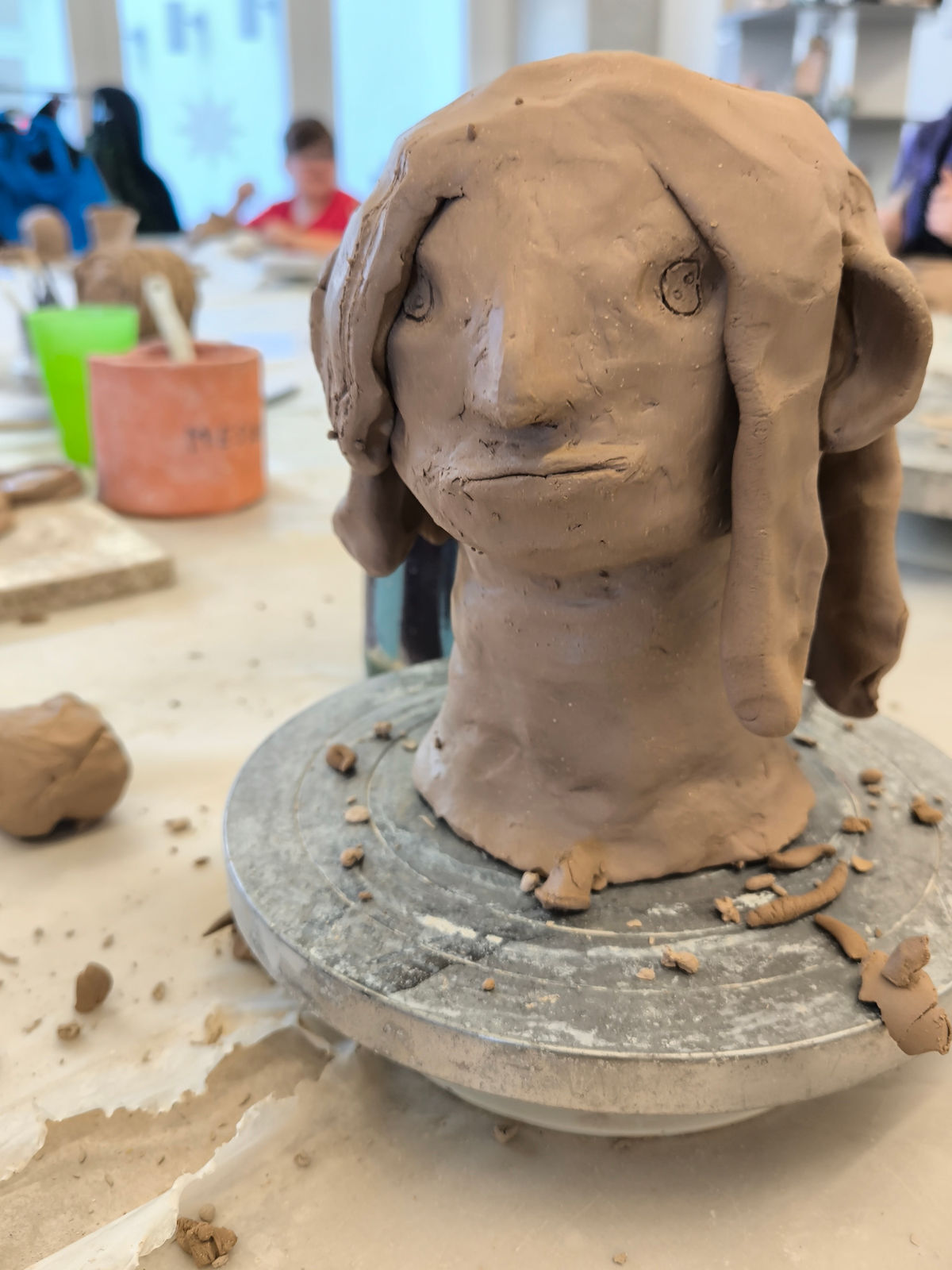 Projektbeschreibung: In dieser Projektwoche modellieren wir Köpfe aus Ton und erfinden neue Persönlichkeiten. Dabei spielt das spielerische Ausprobieren mit dem Material Ton im Mittelpunkt. Wir erkunden wie man den Ton zu einem Kopf formt und wie durch das Auftragen und Abtragen von Ton lustige, gruselige und so unterschiedliche Charaktere entstehen. Wir modellieren Falten, Augen und Haare und schließlich werden die Porträts, mit Farbe bemalt, lebendig. Was verraten uns einzelne Details wie Schmuck, Frisur oder der Gesichtsausdruck über die Person? BITTE DENKT DARAN KLEIDUNG ANZUZIEHEN, DIE AUCH SCHMUTZIG WERDEN KANN!