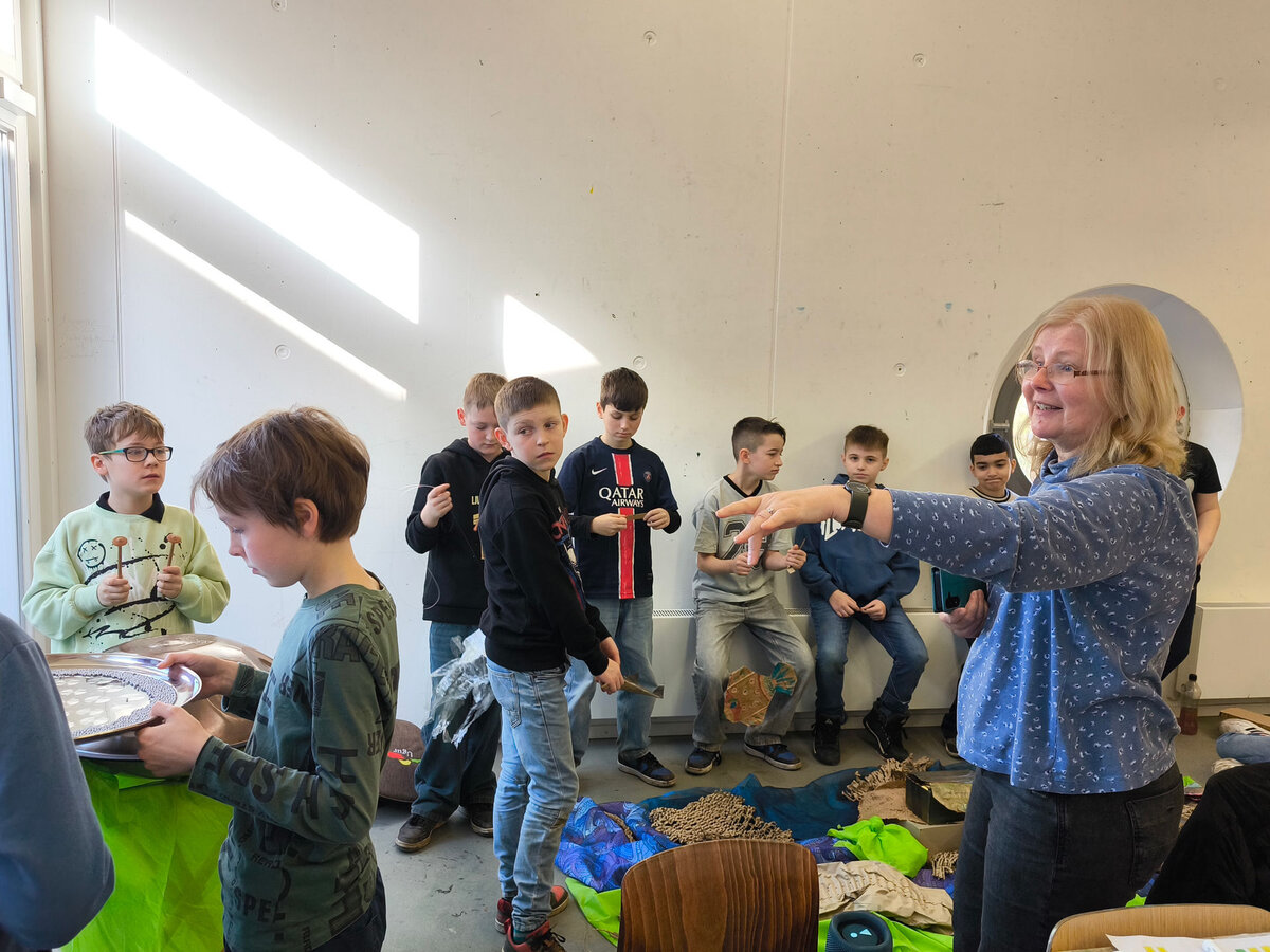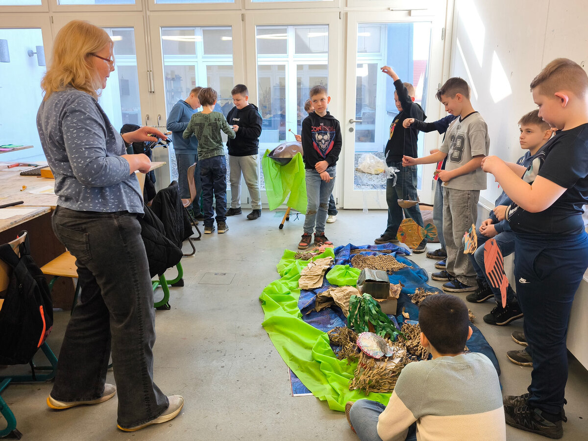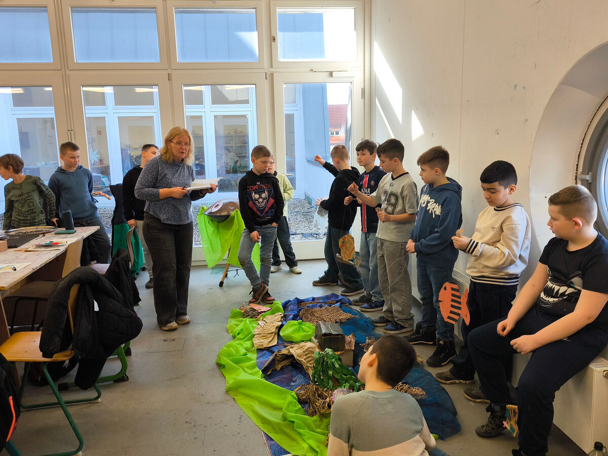 Die Kinder der 4. Klassen der Grundschule Pfeilergraben in Aschersleben weilten für eine Unterrichtswoche in den Werkstätten der Kreativwerkstatt Aschersleben. Am Montag Morgen begann die Projektwoche mit der Vorstellung der Dozentinnen und Dozenten und der Einteilung in die verschiedenen Werkstätten.