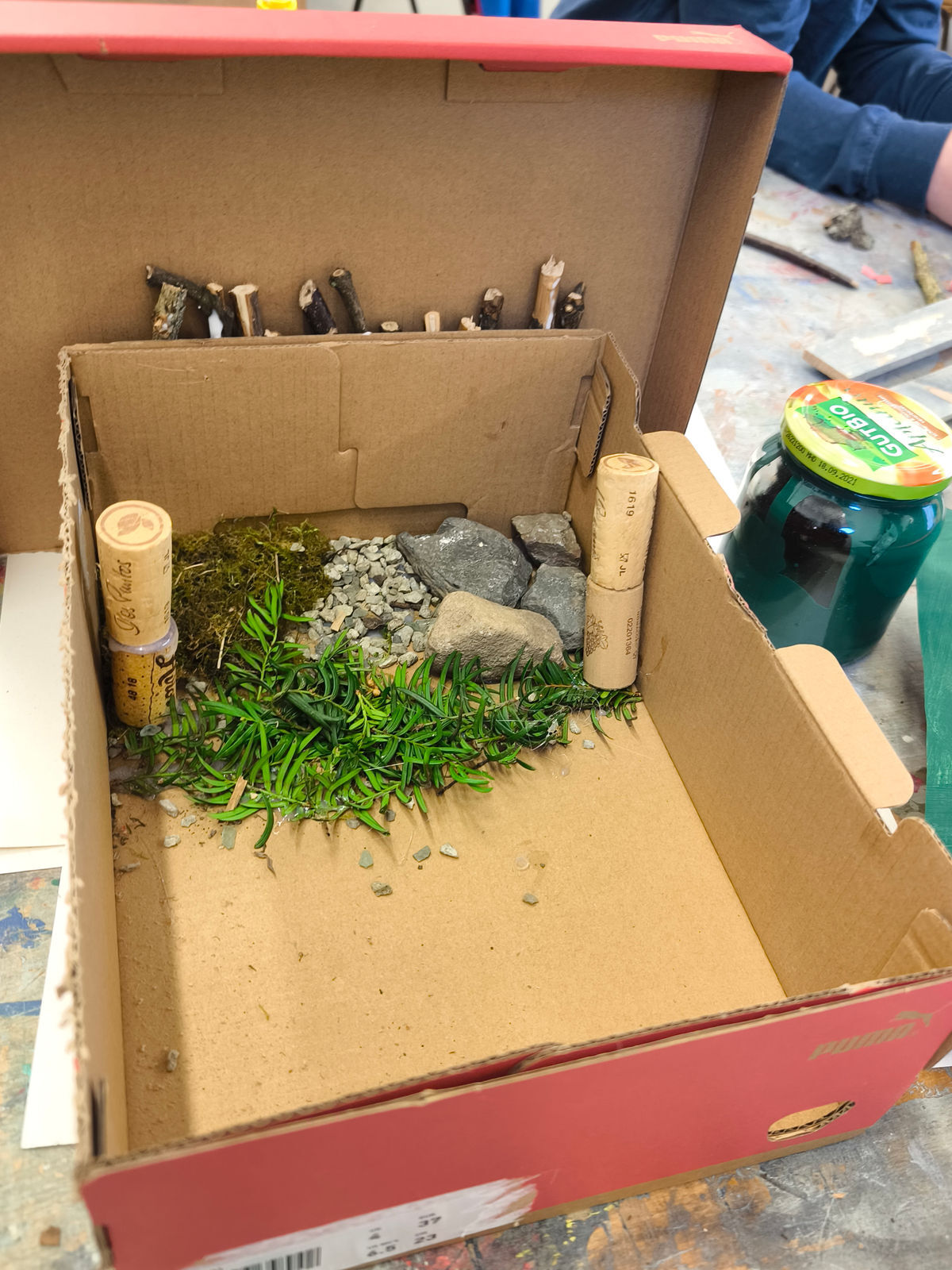 Projektbeschreibung: "Freies Arbeiten mit Naturmaterialien“ Tauche ein in die Welt der Natur durch die Arbeit mit Holz und Naturmaterialien! In diesem Workshop hast du die Möglichkeit, deiner Fantasie freien Lauf zu lassen und einzigartige Kunstwerke zu schaffen. Egal, ob du Skulpturen oder praktische Gegenstände kreieren möchtest – die Natur hält unzählige Inspirationsquellen für dich bereit. Experimentiere mit Kork, verschiedenen Holzarten, Ästen, Rinde und vielen weiteren natürlichen Materialien. Lerne den Umgang mit einfachen Werkzeugen und Hilfsmittel wie Hammer, Nagel, Draht und entdecke neue Techniken, die dir helfen, deine Ideen zum Leben zu erwecken. In der kreativen Atmosphäre unserer Projektwoche kannst du dich kreativ entfalten und die Vielfalt von Holz und Naturmaterialien kennenlernen. Ich freue mich drauf deine individuellen Projekte zu begleiten.
