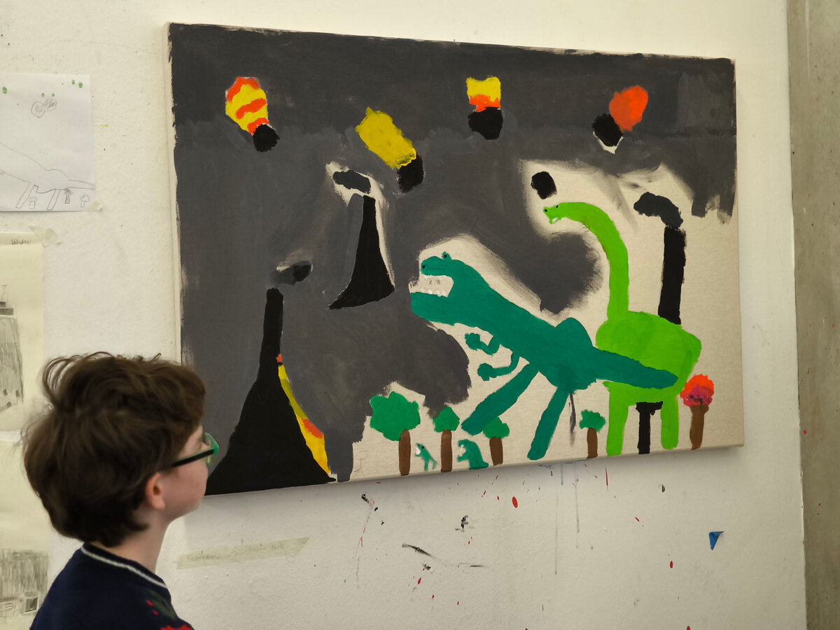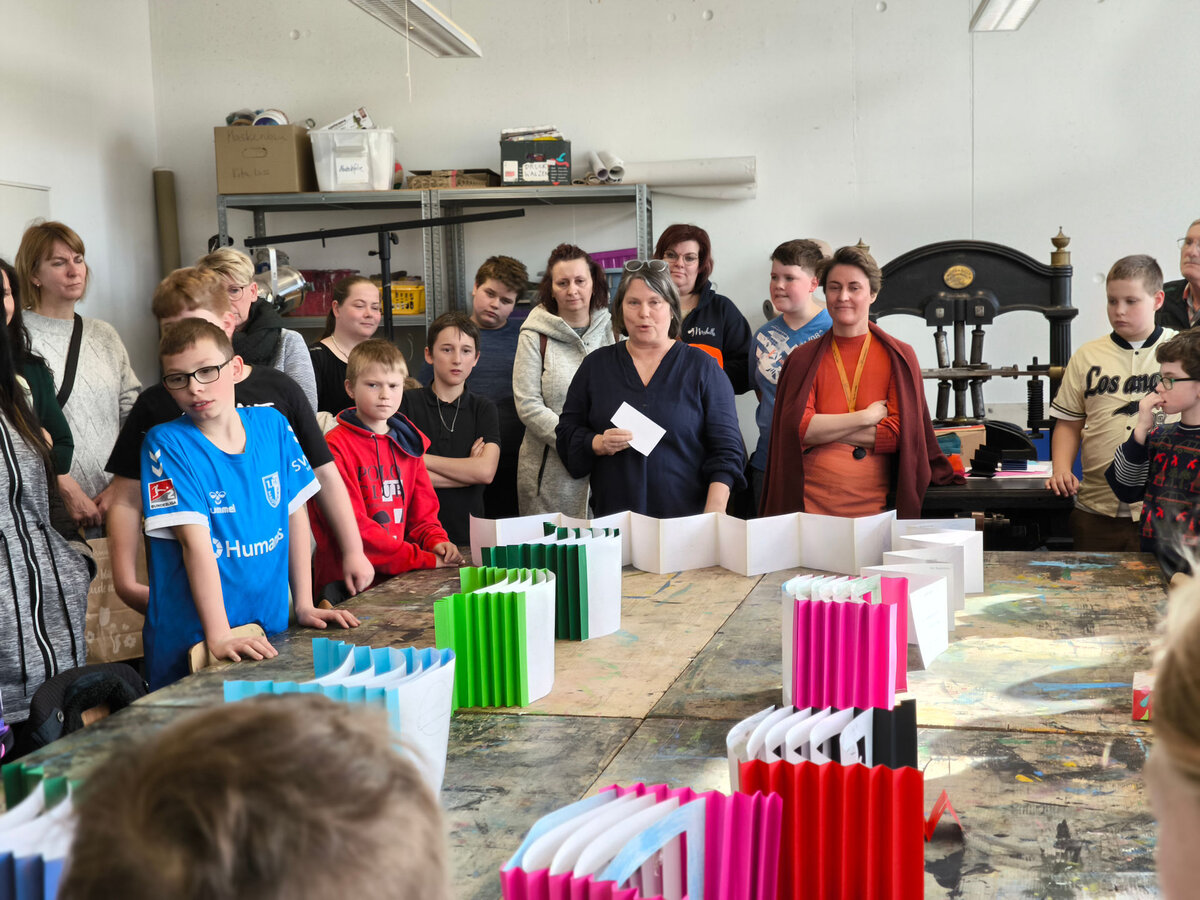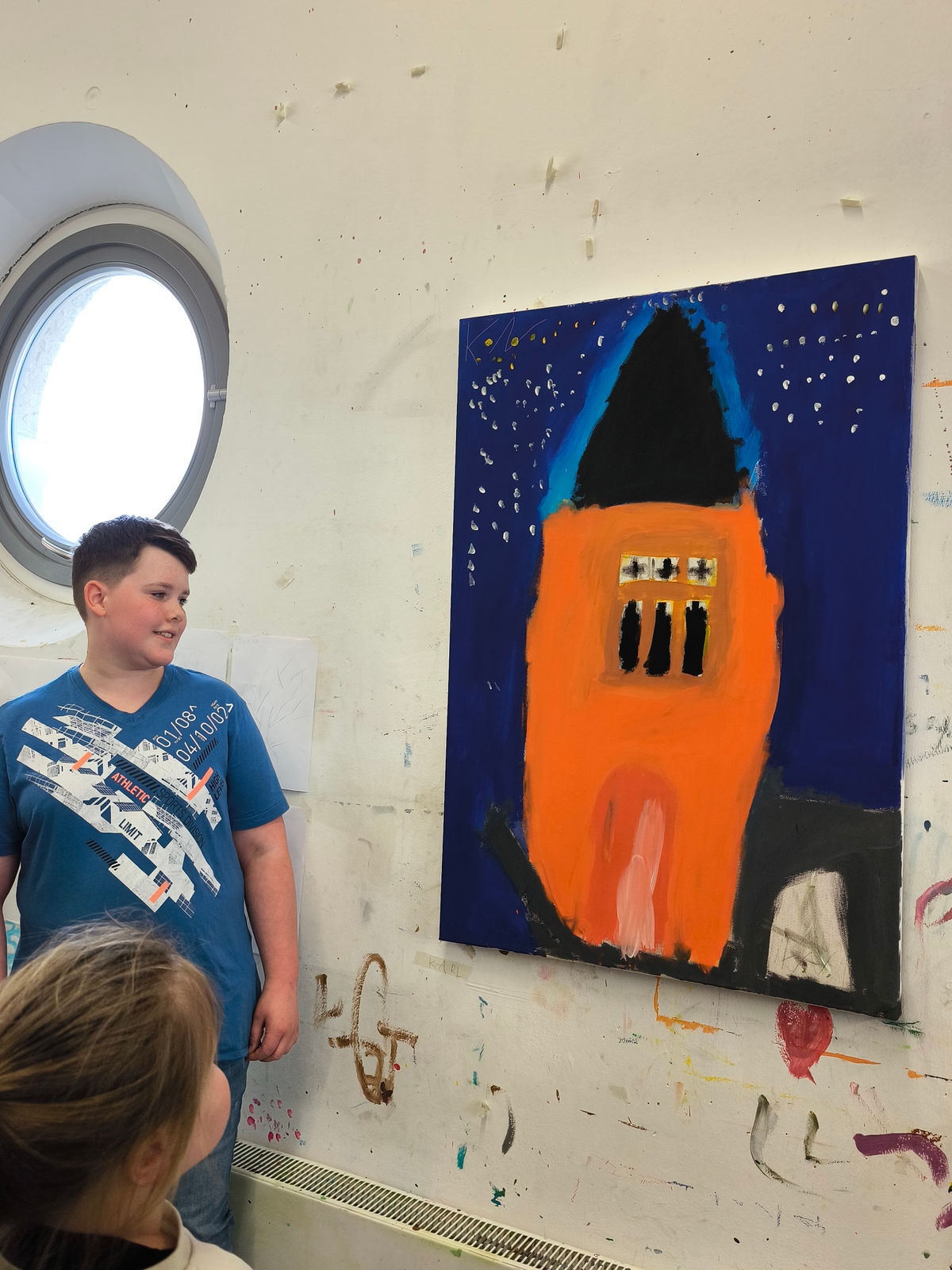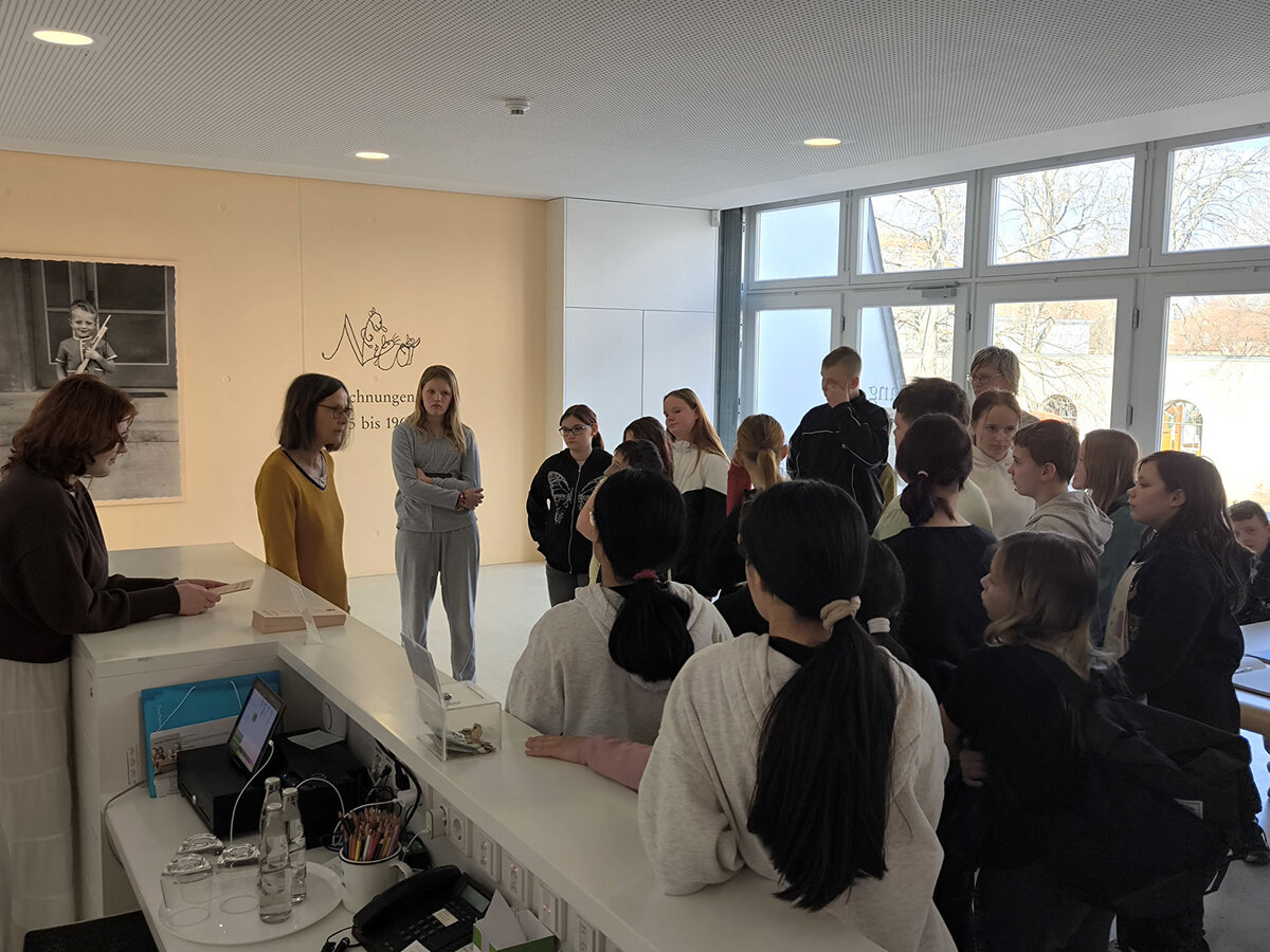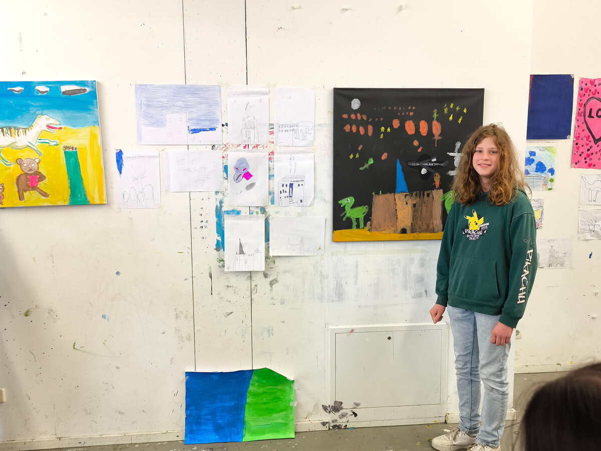 Ein besonderes Erlebnis war in dieser Projektwoche der Besuch der Grafikstiftung Neo Rauch. Die Leiterin der Stiftung, Frau Käther, führte durch die Ausstellung und brachte den Kindern und Jugendlichen die Kinderzeichnungen des Malers Neo Rauch näher. Das war interessant und hat allen gefallen.