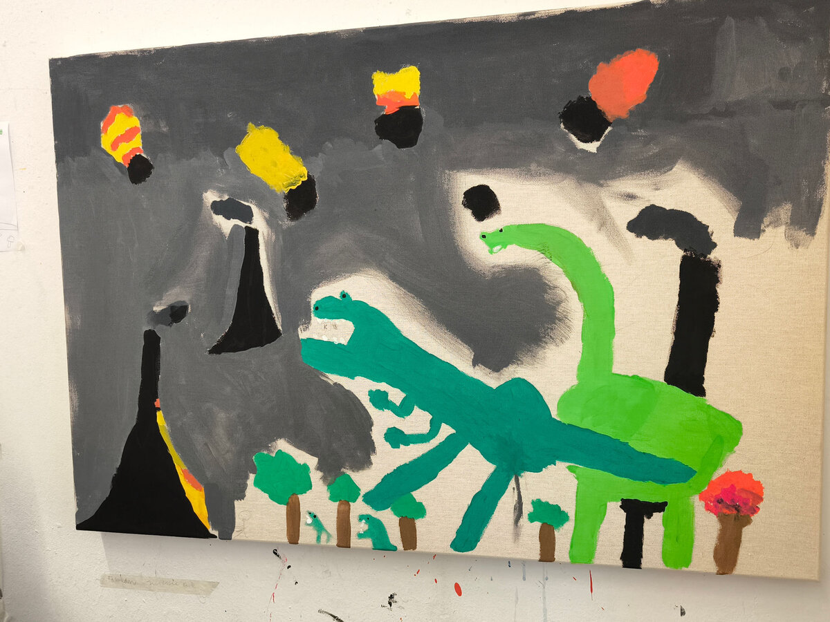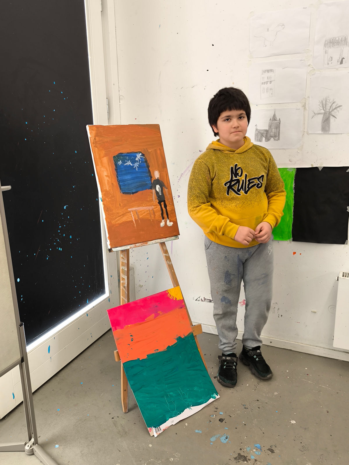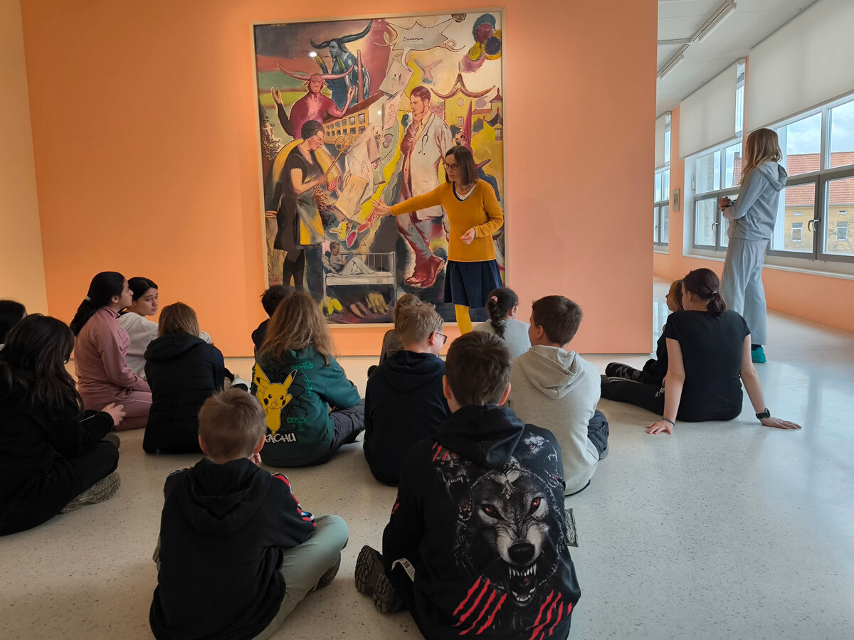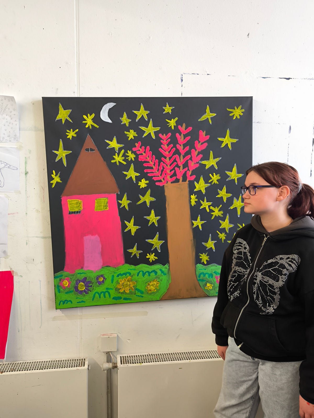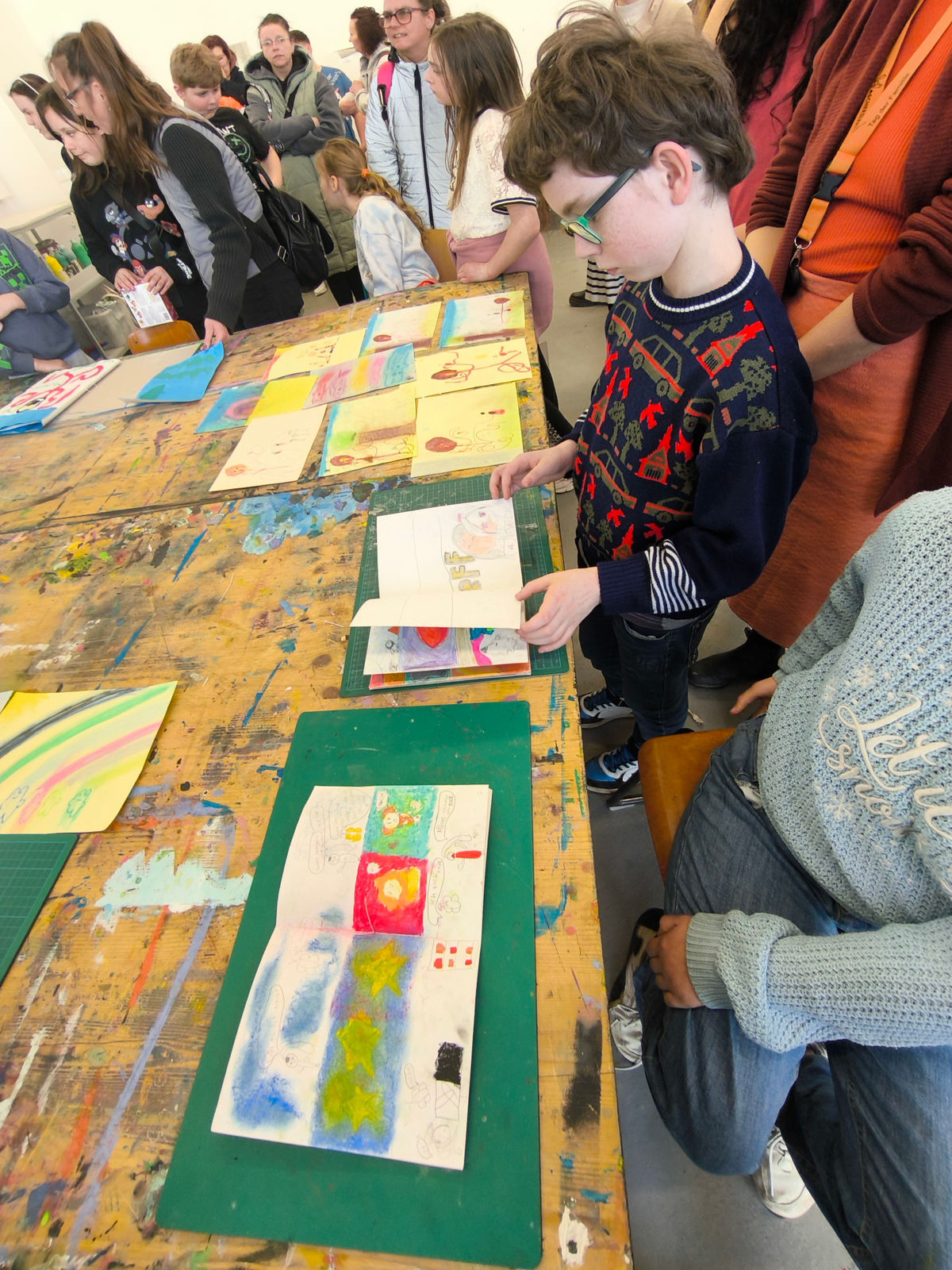 Ein besonderes Erlebnis war in dieser Projektwoche der Besuch der Grafikstiftung Neo Rauch. Die Leiterin der Stiftung, Frau Käther, führte durch die Ausstellung und brachte den Kindern und Jugendlichen die Kinderzeichnungen des Malers Neo Rauch näher. Das war interessant und hat allen gefallen.