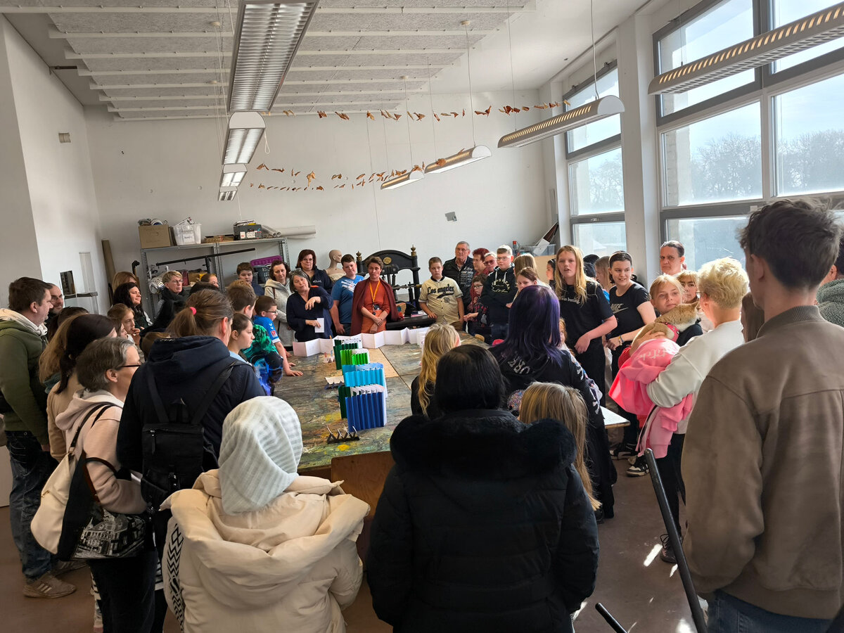 Die Schülerinnen und Schüler der Pestalozzi-Förderschule aus Aschersleben weilten für eine Unterrichtswoche in den Werkstätten der Kreativwerkstatt Aschersleben. Am Montag Morgen begann die Projektwoche mit der Vorstellung der Dozenten und der Einteilung in die verschiedenen Werkstätten.