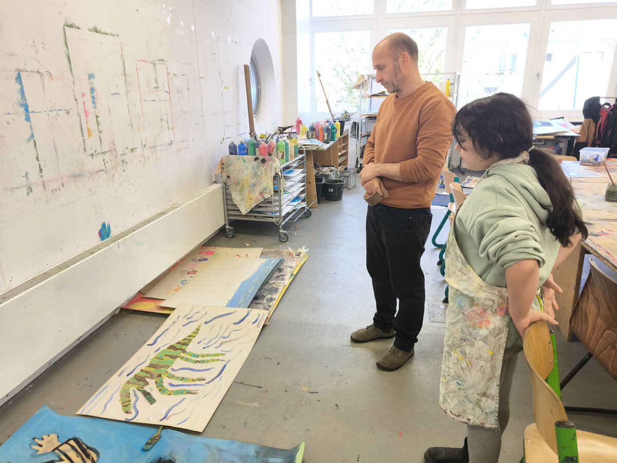 Aus der Projektbeschreibung: „Wir untersuchen die Welt mit allen Sinnen“ In der geplanten Kurswoche für Malerei, untersuchen wir die Welt mit allen Sinnen. Wir werden gehörte, gesehene, gefüllte und geschmeckte Erlebnisse und andere eigene Erfahrungen in Bildern verarbeiten. Das Malen ist ein sinnliches Erlebnis. Das frei experimentieren mit Farben wird daher ein Themenbereich der Woche sein. Ebenfalls werden verschiedene Maltechniken erprobt. Wir werden Farben mischen und uns mit den einzelnen Farbtönen auseinandersetzen. Mittels Zeichnung und Malerei könnt ihr eure Erfahrungen unter Anleitung in unterschiedlichen Bildern auf größeren Bildformaten umsetzen. Jeden Tag wird es verschiede Themen und Aufgaben geben, damit Ihr eine ganze Reihe vielfältiger Bildresultate erhaltet. BITTE DENKT DARAN KLEIDUNG ANZUZIEHEN, DIE AUCH SCHMUTZIG WERDEN KANN!