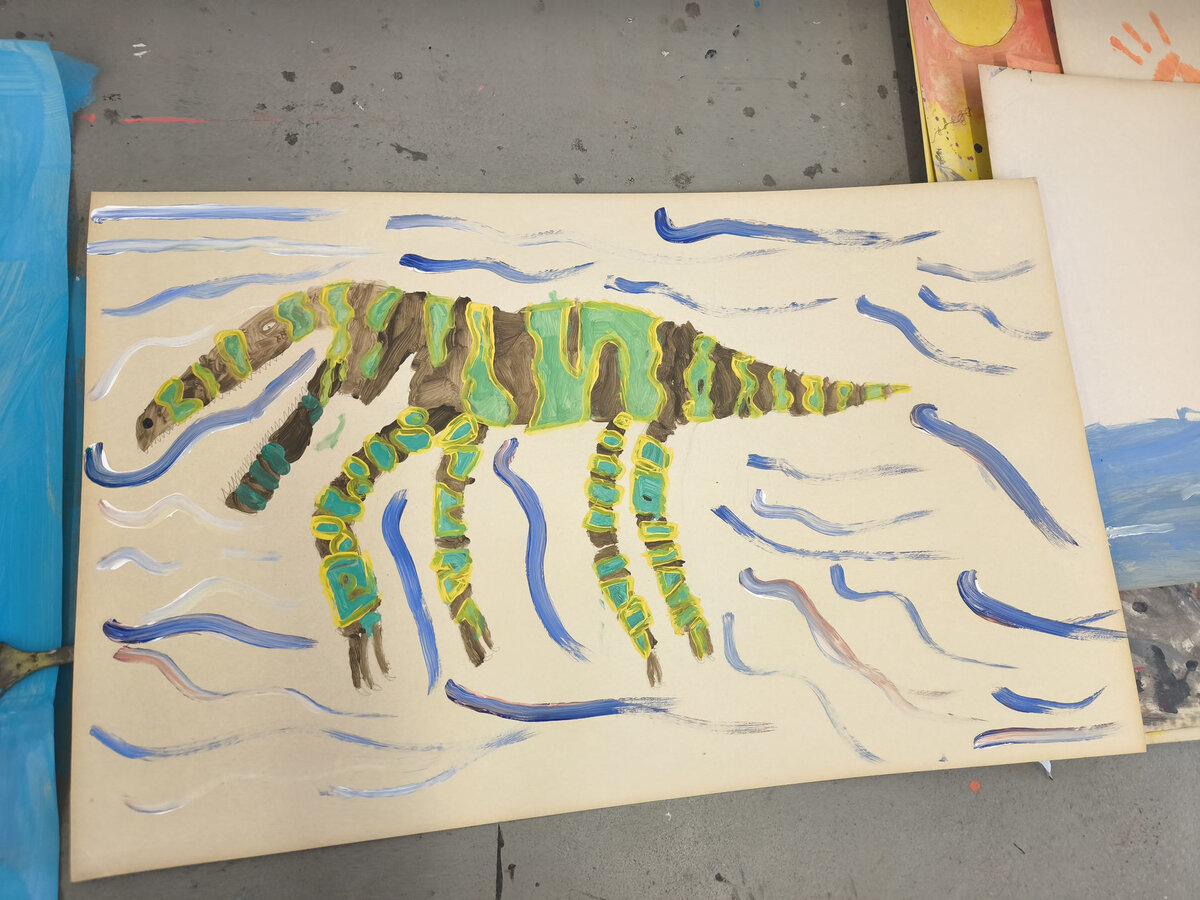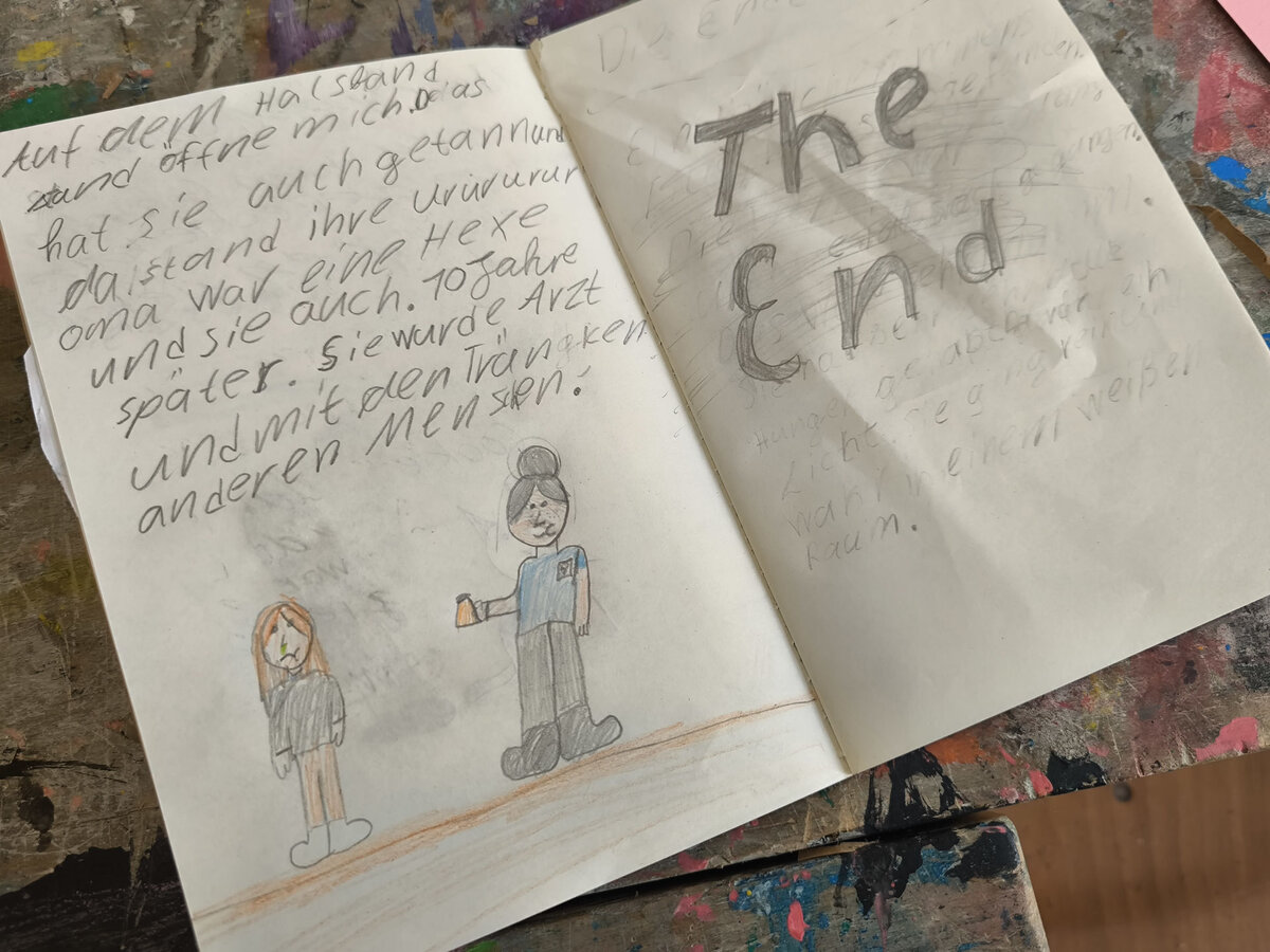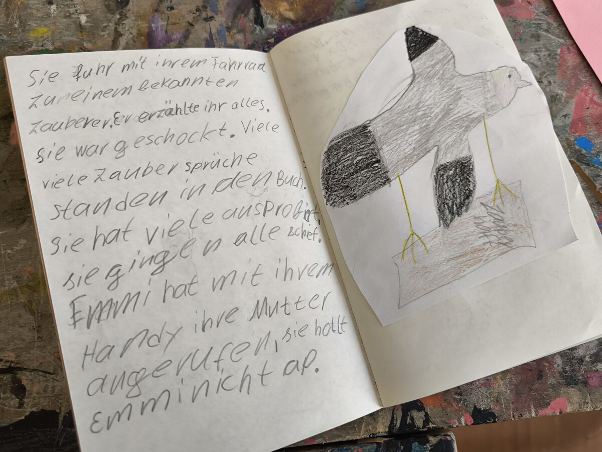 Aus der Projektbeschreibung: „Reise zum Mittelpunkt der Erde“ Kommt mit auf eine Abenteuerreise und taucht ein in noch unbekannte Welten und Landschaften im Inneren unserer Erde, genau wie der Professor Lidenbrock und sein Neffe, in Jules Vernes bekannten Roman: „Die Reise zum Mittelpunkt der Erde“. Wir werden die Geschichte teils vorlesen und beim Arbeiten zu unserer Inspiration auch das Hörbuch hören. Wir entdecken unterirdische Meere, feuerspeiende und erloschene Vulkane, weit verzweigte Höhlen und Gebirgszüge und treffen dort auf allerhand fantastische Wesen, Pflanzen und Tiere. Wir malen, zeichnen und collagieren unsere Entdeckungen. Wir finden leuchtende Kristalle, bunte Gesteinsschichten und heiße Quellen. Das Portal in diese unterirdische Welt liegt hinter unseren geschlossenen Augen - in unseren Herzen und unserer Phantasie. Ihr seid gespannt auch wo uns die Reise hinführt? Dann seid dabei und kommt mit auf ein malerisches Abenteuer ins Innere unseres Planeten! BITTE DENKT DARAN KLEIDUNG ANZUZIEHEN, DIE AUCH SCHMUTZIG WERDEN KANN!